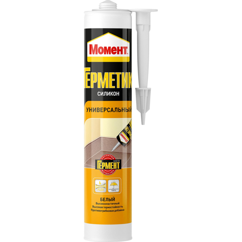 Герметик универсал. силиконовый Момент (белый), 280 мл (756752/2353935)Служит для устранения протечек и сквозняков. На кухне и в ванной комнате, на дачах, в гаражах и автомобилях он обеспечивает долговечную и эластичную герметизацию. Подходит для внутренних и внешних работ. Незаменим для уплотнения оконных рам. Внешний вид и/или характеристики товара могут быть изменены производителем в соответствии с производственным процессом.Время высыхания поверхности: 20-30 минут;Время полного высыхания: 2 мм/сутки;