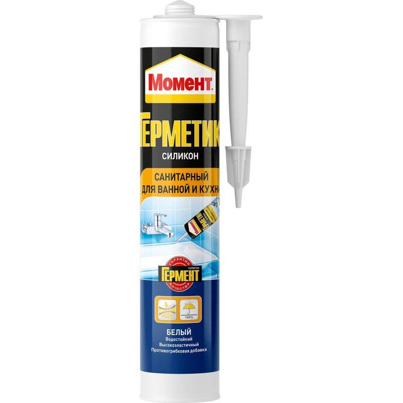 Герметик силиконовый для ванной Момент (белый), 280 мл (756787/2047372)Предназначен для герметизации кухни и ванных комнат, бани и душевых, при остеклении, кораблестроении, в подвижных и неподвижных швах внутри и снаружи зданий.Внешний вид и/или характеристики товара могут быть изменены производителем в соответствии с производственным процессом.Время высыхания поверхности: 20-30 минут;Время полного высыхания: 2 мм/сутки;
