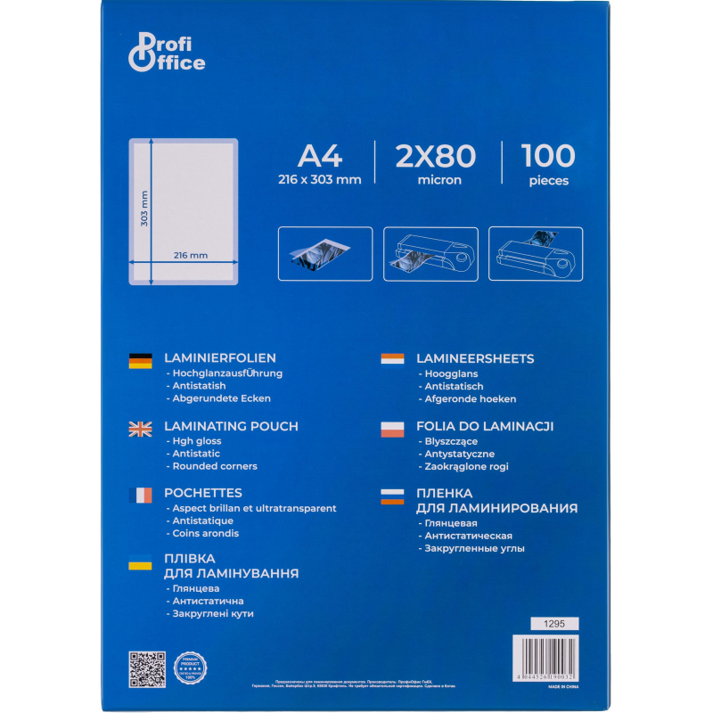 Глянцевая пакетная пленка для горячего ламинирования, формата А4. Толщина одной стороны 80 мкм. Антистатичная, все углы закругленные. Ламинирование надежно защищает документ от влаги, пыли и прочих загрязнений. Позволяет надолго сохранить презентабельность документов. Рекомендации по эффективному ламинированию: 1) Убедитесь, что температура ламинатора соответствует микронности пленки. Чем больше толщина пленки, тем выше должна быть выставленная на ламинаторе температура или микронность. Если ламинатор перегрет (на готовом образце появились волны или пузыри), то ламинатору необходимо дать остыть, иначе пленка будет плавиться. Если ламинатор холодный, то при ламинировании на пленке могут образоваться незаламинированные места или пузыри. 2) Если при ламинировании используется бумага бОльшей плотности (более 80 г/м2), то на ламинаторе необходимо установить бОльшую (температуру/микронность). 3) Пакет для ламинирования необходимо загружать в ламинатор строго запаянной стороной пакета. Важно! Формат пленки подбираем так, чтобы кант (свободное место) вокруг документа составлял 0.5-1 см. Чем больше кант, тем прочнее и герметичнее будет запаян документ. Документ капсулируем в пленку-пакет, разогреваем ламинатор. Пленку-пакет загружаем в ламинатор запаянной стороной вперед. После завершения процесса ламинации дайте готовому изделию остыть 30-40 секунд. Важно помнить, что температура ламинатора должна соответствовать микронности (толщине одной стороны) пленки. Разрезать пакеты для ламинирования под требуемый формат категорически нельзя, т.к. происходит смещение слоев пленки и клея. При ламинировании клей будет засорять валы ламинатора, а при последующем ламинировании к клеевым остаткам на валах будет приклеиваться пленка, и как следствие - ламинатор может выйти из строя; если при ламинировании используется бумага нестандартной плотности более 80 г/м2, то на ламинаторе необходимо установить бОльшую температуру. Не рекомендуется ламинировать дизайнерскую бумагу с неровной поверхностью и наличием тактильных эффектов. Пленка в таких случаях ляжет неравномерно.