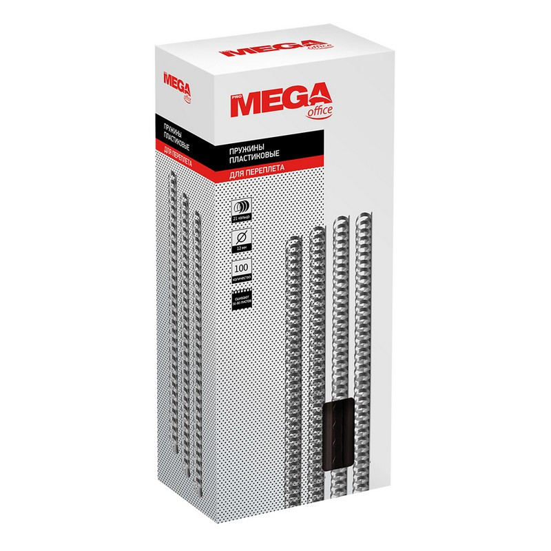 Пружины для переплета пластиковые ProMega office предназначены для сшивания до 80 листов формата А4 при помощи брошюровщика. Позволяют вынимать и добавлять листы в готовый документ. Изготовлены из прочного пластика черного цвета, состоят из 21 кольца диаметром 12 мм, шаг переплета - 3:1. Поставляются по 100 штук в упаковке. Внимание! Стандартная длина пружины: 288-293 мм. В производстве допускается выпуск до 0.25% продукции с отклонением от стандартной длины на +/- 1 мм. Данные пружины пригодны для использования после ручной регулировки в брошюровальной машине. Товар относится к ценовому сегменту 'бюджет'. Имеет базовые характеристики и более простую упаковку. Отвечает основным требованиям потребления.