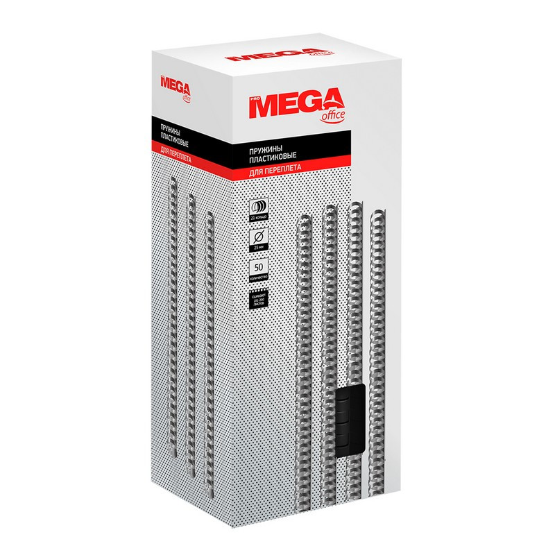 Пружины для переплета пластиковые ProMega office предназначены для сшивания до 200 листов формата А4 при помощи брошюровщика. Позволяют вынимать и добавлять листы в готовый документ. Изготовлены из прочного пластика черного цвета, состоят из 21 кольца диаметром 25 мм, шаг переплета - 3:1. Поставляются по 50 штук в упаковке. Внимание! Стандартная длина пружины: 288-293 мм. В производстве допускается выпуск до 0.25% продукции с отклонением от стандартной длины на +/- 1 мм. Данные пружины пригодны для использования после ручной регулировки в брошюровальной машине. Товар относится к ценовому сегменту 'бюджет'. Имеет базовые характеристики и более простую упаковку. Отвечает основным требованиям потребления.