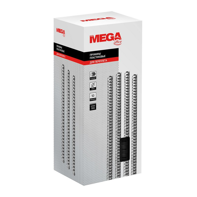 Пружины для переплета пластиковые ProMega office предназначены для сшивания до 240 листов формата А4 при помощи брошюровщика. Позволяют вынимать и добавлять листы в готовый документ. Изготовлены из прочного пластика черного цвета, состоят из 21 кольца диаметром 28 мм, шаг переплета - 3:1. Поставляются по 50 штук в упаковке. Внимание! Стандартная длина пружины: 288-293 мм. В производстве допускается выпуск до 0.25% продукции с отклонением от стандартной длины на +/- 1 мм. Данные пружины пригодны для использования после ручной регулировки в брошюровальной машине. Товар относится к ценовому сегменту 'бюджет'. Имеет базовые характеристики и более простую упаковку. Отвечает основным требованиям потребления.