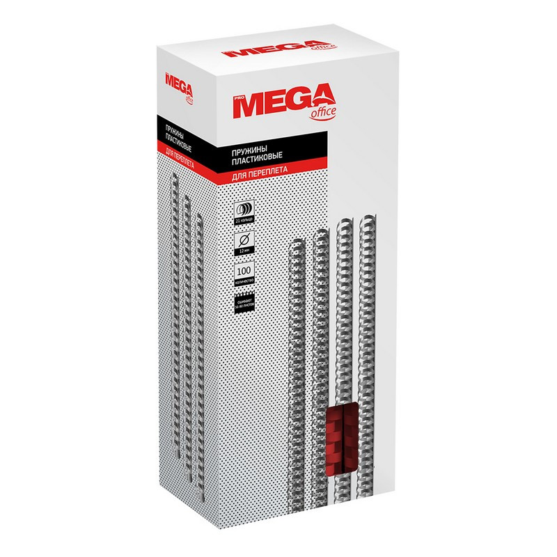 Пружины для переплета пластиковые ProMega office предназначены для сшивания до 80 листов формата А4 при помощи брошюровщика. Позволяют вынимать и добавлять листы в готовый документ. Изготовлены из прочного пластика красного цвета, состоят из 21 кольца диаметром 12 мм, шаг переплета - 3:1. Поставляются по 100 штук в упаковке. Внимание! Стандартная длина пружины: 288-293 мм. В производстве допускается выпуск до 0.25% продукции с отклонением от стандартной длины на +/- 1 мм. Данные пружины пригодны для использования после ручной регулировки в брошюровальной машине.