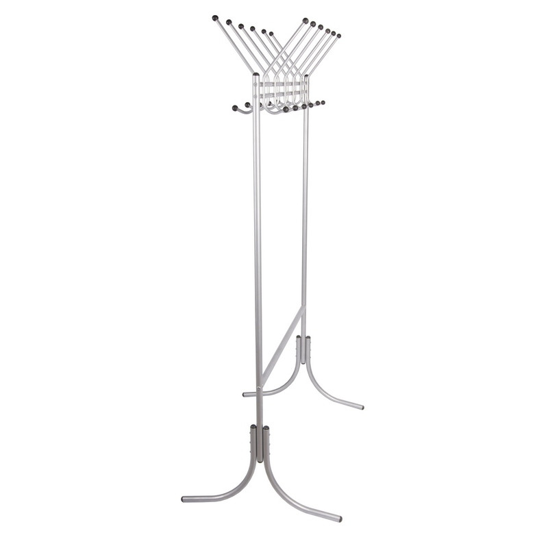 Вешалка выполнена из круглой трубы диаметром 25 и 16 мм. Крючки выполнены из круглой трубы диаметром 10 мм. Количество крючков: 12. Покрытие: порошковая покраска. Цвет: металлик матовый. Преимущества: Компактность в собранном виде. Крепление ножек на стяжках (не используются саморезы), что продлевает срок службы изделия. Наличие нижней планки для складных зонтов (мокрые зонты находятся ниже одежды, сохраняя ее от влаги). При самостоятельной сборке товара необходимо четко следовать инструкции для правильного выравнивания опор и обеспечения устойчивости вешалки. Максимально допустимая нагрузка - 90 кг. <!--noindex-->Изображения товаров на сайте не могут гарантировать точную цветопередачу.<!--/noindex-->