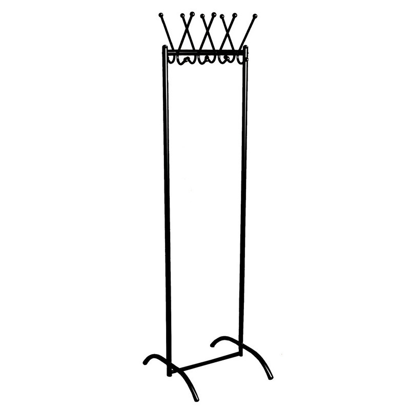 Напольная вешалка выполнена из стальной трубы диаметром 25 мм и толщиной стали 1.2 мм. Заглушки крючков вешалок выполнены из пластмассы в форме шариков. Вешалка выполнена в виде сборно-разборной конструкции (Верхняя часть вешалки-стяжка с крючками является монолитной, что упрощает процесс сборки). Порошковый окрас посредством высокотемпературного запекания обеспечивает устойчивое и однородное покрытие вешалки. Четыре опоры обеспечивают повышенную устойчивость. Четыре пары крючков обеспечивают максимально эффективную загруженность вешалки одеждой. Покрытие: порошковая покраска. Цвет черный матовый. При самостоятельной сборке товара необходимо четко следовать инструкции для правильного выравнивания опор и обеспечения устойчивости вешалки. Максимально допустимая нагрузка - 90 кг. <!--noindex-->Изображения товаров на сайте не могут гарантировать точную цветопередачу.<!--/noindex-->