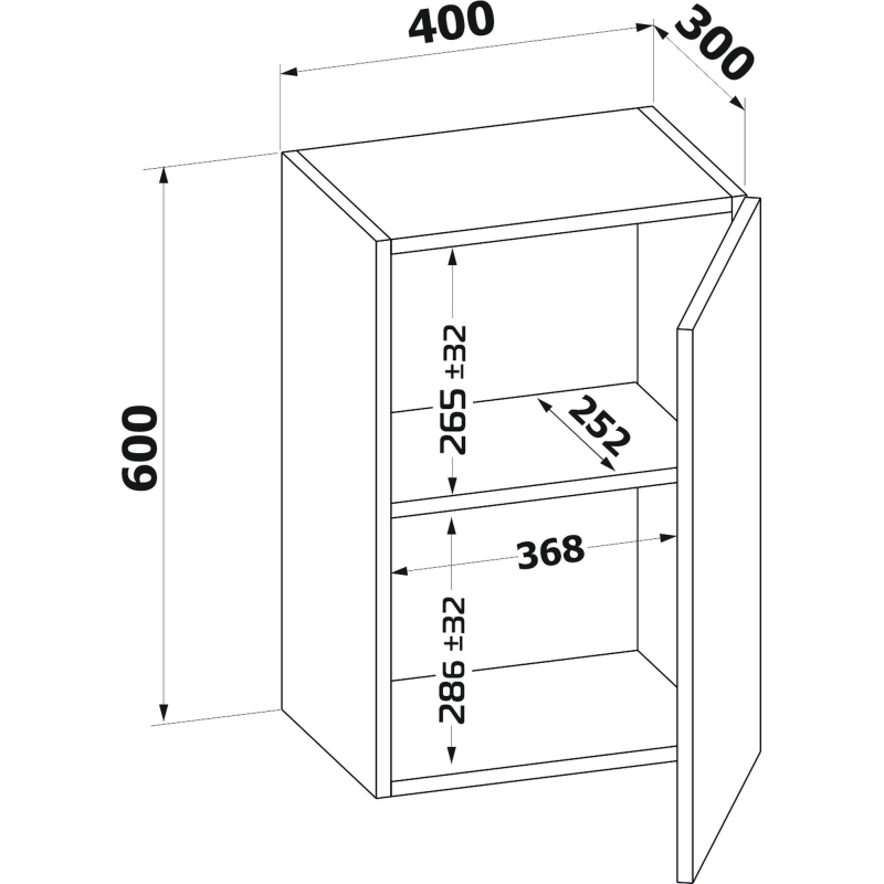 Кухонный настенный шкаф с полкой внутри. Дверь можно навесить на любую сторону. Шкаф сделан из ЛДСП 16 мм, края обработаны кромкой ПВХ 0,4 мм. Ручка - металл. <!--noindex-->Изображения товаров на сайте не могут гарантировать точную цветопередачу.<!--/noindex-->