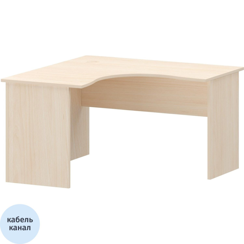 Внимание! Пожалуйста, проверяйте цвет изделия до начала сборки! Цвет на изображении товара в интернет-магазине или в печатном каталоге может отличаться от оригинала из-за особенностей цветопередачи. Стол угловой выполнен из ЛДСП. Имеет криволинейный вырез в месте сидения. Кромки стола отделаны лентой из ПВХ для защиты от повреждений и разбухания. Материал и толщина столешницы, кромки - ЛДСП толщиной 22 мм, кромка ПВХ толщиной 2 мм. Материал и толщина каркаса, кромки - ЛДСП толщиной 22 мм, кромка ПВХ толщиной 2 мм. Дополнительные элементы - кабель-канал.