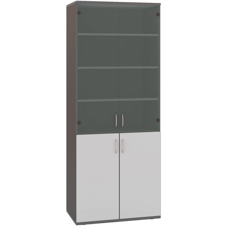 Внимание! Пожалуйста, проверяйте цвет изделия до начала сборки! Цвет на изображении товара в интернет-магазине или в печатном каталоге может отличаться от оригинала из-за особенностей цветопередачи. Шкаф для документов из коллекции офисной мебели Стратегия разделен на шесть ниш, из которых четыре верхние закрыты стеклянными дверцами, а две нижние ламинированными серого цвета. Законодательные и технические документы.