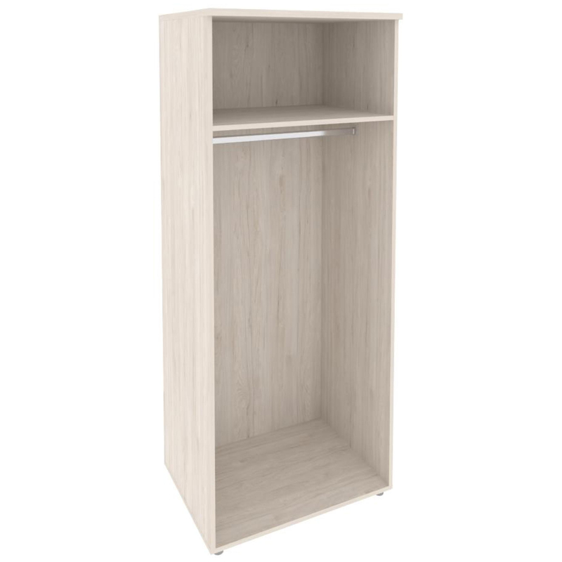 Внимание! Пожалуйста, проверяйте цвет изделия до начала сборки! Цвет на изображении товара в интернет-магазине или в печатном каталоге может отличаться от оригинала из-за особенностей цветопередачи.Гардероб глубокий O. GB-2. Крышка толщиной 25 мм, задняя стенка ЛХДФ толщиной 3,5 мм, остальные детали конструкции толщиной 18 мм. Шкаф закрыт двумя распашными накладными фасадами O. D-1, в верхней части шкафа жестко закрепленная полка, под ней овальная штанга. Опоры регулируемые высотой 27 мм. Цвет покрытия денвер светлый.