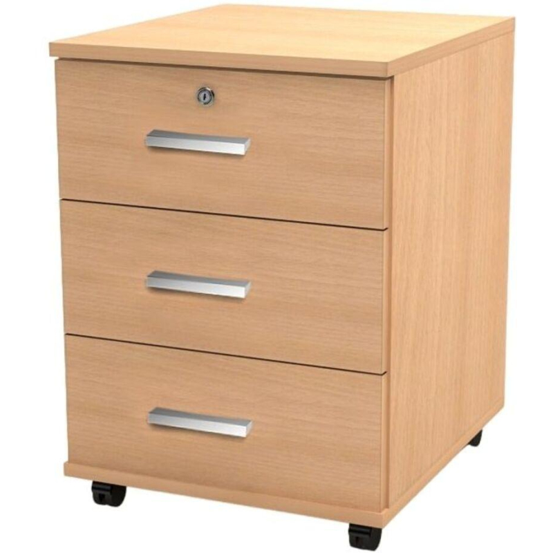 Внимание! Пожалуйста, проверяйте цвет изделия до начала сборки! Цвет на изображении товара в интернет-магазине или в печатном каталоге может отличаться от оригинала из-за особенностей цветопередачи.Тумба Канц ТК29.10 изготовлена из ЛДСП цвета бук с ламинированным покрытием. Кромки отделаны лентой из ПВХ для защиты от повреждений. Имеет три выдвижных ящика, самый верхний из которых запирается на ключ. Материал и толщина топа и кромки: ЛДСП 16 мм, ПВХ 0,47 мм. Материал и толщина каркаса и кромки: ЛДСП 16 мм, ПВХ 0,47 мм. Материал и толщина задней стенки: ХДФ 3,2 мм. Законодательные и технические документы.