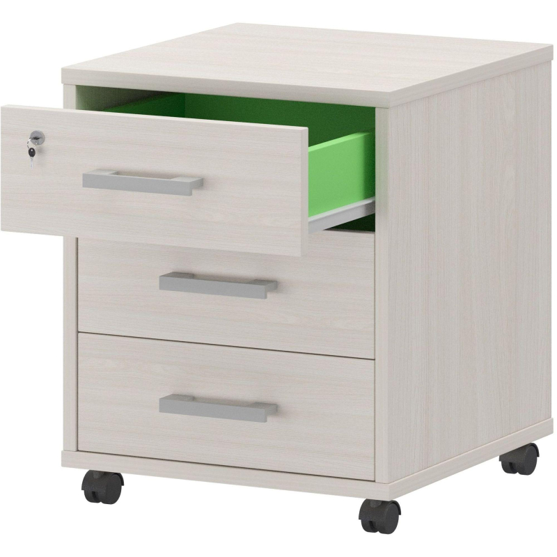 Внимание! Пожалуйста, проверяйте цвет изделия до начала сборки! Цвет на изображении товара в интернет-магазине или в печатном каталоге может отличаться от оригинала из-за особенностей цветопередачи.Выкатная тумба "Арго" имеет размеры 58x44 см и глубину 45 см. Изготовлена из ЛДСП с износостойким ламинированным покрытием цвета ясень шимо. Оснащена тремя выдвижными ящиками, верхний из которых закрывается на ключ. Кромки отделаны лентой из ПВХ для защиты от повреждений. Основание тумбы с четырьмя роликами для удобного перемещения. Боковая и задняя стенка выдвижного ящика выполнена в цвете лайм. ЗАКОНОДАТЕЛЬНЫЕ И ТЕХНИЧЕСКИЕ ДОКУМЕНТЫ: