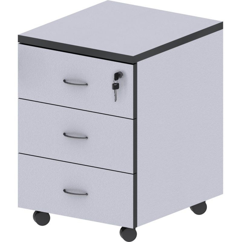 Внимание! Пожалуйста, проверяйте цвет изделия до начала сборки! Цвет на изображении товара в интернет-магазине или в печатном каталоге может отличаться от оригинала из-за особенностей цветопередачи.Тумба Агат на колесных опорах. Корпус серого цвета выполнен из ламинированной древесно-стружечной плиты, безопасной для здоровья и окружающей среды. Торцы топа и прочие видимые кромки защищены от повреждений ударопрочной и термоустойчивой пленкой ПВХ. Тумба снабжена замком и тремя выдвижными ящиками. Материал и толщина топа и кромки: ЛДСП 22 мм, ПВХ 2 мм. Материал и толщина каркаса и кромки: ЛДСП 18 мм, ПВХ 0,5 мм. Материал и толщина задней стенки: ЛДСП 18 мм. Законодательные и технические документы.