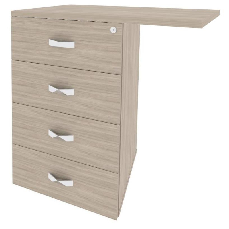 Внимание! Пожалуйста, проверяйте цвет изделия до начала сборки! Цвет на изображении товара в интернет-магазине или в печатном каталоге может отличаться от оригинала из-за особенностей цветопередачи.Тумба приставная Onix O.TPU-4. Ящики тумбы на роликовых направляющих, опоры пластиковые регулируемые. Задняя стенка ЛДСП. Центральный замок фиксирует в закрытом положении все четыре ящика. Топ может нависать как с левой так и с правой стороны тумбы. Цвет покрытия дуб аттик.