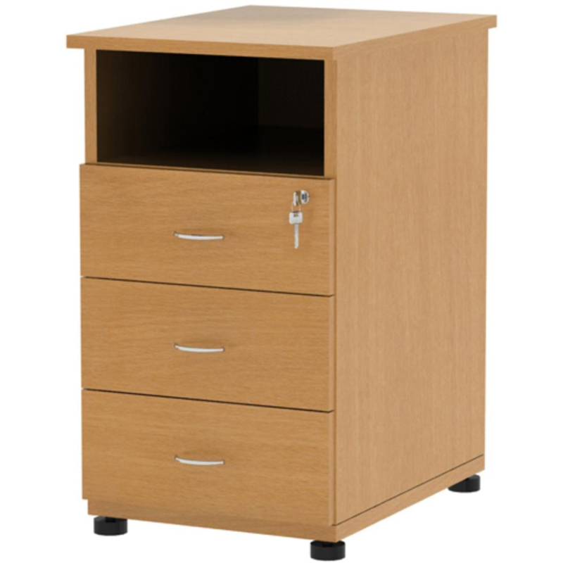 Внимание! Пожалуйста, проверяйте цвет изделия до начала сборки! Цвет на изображении товара в интернет-магазине или в печатном каталоге может отличаться от оригинала из-за особенностей цветопередачи.Тумба Этюд имеет размеры 75x43,2 см и глубину 60 см. Выполнена из ЛДСП цвета бук бавария. Три выдвижных ящика, верхний из которых закрывается на замок, над ними открытая ниша для документов. Кромки отделаны лентой из прочного ПВХ для защиты от повреждений. Материал и толщина топа и кромки: ЛДСП толщиной 25 мм, ПВХ толщиной 0,45 мм. Материал и толщина каркаса и кромки: ЛДСП толщиной 25 мм, ПВХ толщиной 0,45 мм. Материал и толщина задней стенки: ЛДСП толщиной 25 мм.