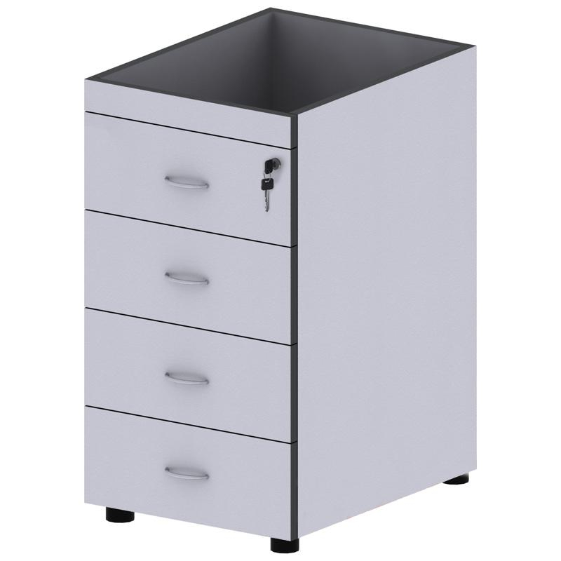 Внимание! Пожалуйста, проверяйте цвет изделия до начала сборки! Цвет на изображении товара в интернет-магазине или в печатном каталоге может отличаться от оригинала из-за особенностей цветопередачи.Тумба Агат в корпусе серого цвета, изготовленном из ламинированных древесно-стружечных плит. Кромки и торцы облицованы защитной пленкой из ПВХ. Тумба устанавливается на стационарные опоры, позволяющие компенсировать неровности пола. Оснащена четырьмя ящиками, один из которых снабжен замком. Тумбу необходимо укомплектовать топом, размер которого соответствует глубине столешницы. Материал и толщина каркаса и кромки: ЛДСП 18 мм, ПВХ 0,5 мм. Материал и толщина задней стенки: ЛДСП 18 мм. Законодательные и технические документы.