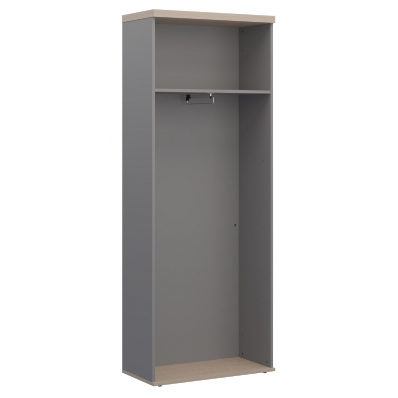 Внимание! Пожалуйста, проверяйте цвет изделия до начала сборки! Цвет на изображении товара в интернет-магазине или в печатном каталоге может отличаться от оригинала из-за особенностей цветопередачи.Корпус гардероба с полкой для головных уборов, выдвижной штангой-вешалкой. Задняя стенка гардероба усилена тремя ребрами жесткости, изготовленными из ДСП толщиной 16 мм. Полки каркаса шкафа установлены на фиксаторы полок (clock), исполнены в цвете базальт. Боковины не имеют сквозных отверстий для крепления боковых порталов, поэтому каркас шкафов может использоваться как с боковыми порталами, так и без них. Каркас шкафа собирается с помощью эксцентриковых стяжек. Каркас шкафа имеет регулировку по высоте.