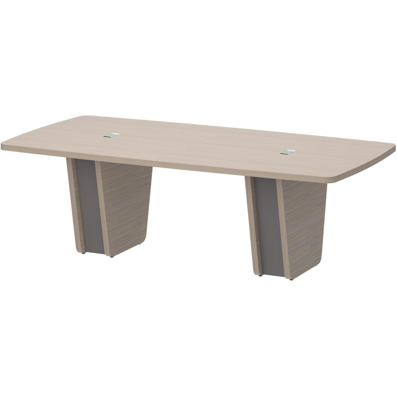 Внимание! Пожалуйста, проверяйте цвет изделия до начала сборки! Цвет на изображении товара в интернет-магазине или в печатном каталоге может отличаться от оригинала из-за особенностей цветопередачи.Отдельно-стоящий стол габаритами 2400x1200x753 мм с двумя проводниками в цвете хром. Крышка стола (древодекор ДСтП 38 мм, кромка ABS 2 мм) исполнена в цвете дуб скандинавский с продольной текстурой древодекора. Опоры стола декоративные комбинированные, каждая из них состоит из двух боковин правильной трапециевидной формы со скругленными углами (древодекор ДСтП 38 мм, кромка ABS 2 мм), исполненных в цвете дуб скандинавский с поперечным направлением текстуры древодекора, между которыми зажата вставка (униколор ДСтП 16 мм, кромка ABS 1 мм), исполненная в цвете базальт.