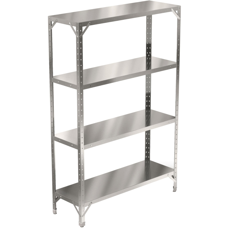 Стеллаж используется в кухонных цехах для хранения сухих видов продуктов и кухонного инвентаря. Стеллаж имеет разборную конструкцию и состоит из четырех стоек и четырех полок. Стойки изготавливаются высотой 1800, и 2000 мм, изготовлены из оцинкованного металла. Полки сплошные изготовлены из нержавеющей стали Aisi 430, могут крепиться на требуемой высоте. Ножки стеллажа снабжены регуляторами высоты, что позволяет компенсировать неровности пола, также имеются дополнительные конструктивные элементы, предназначенные для предотвращения его раскачивания во время работы и придающие хорошую устойчивость. Универсальная конструкция позволяет легко производить сборку стеллажей. При необходимости можно приобрести любое количество полок дополнительно. Дополнительные элементы (разделители, ограничители), а также папки в комплект стеллажа не входят и заказываются отдельно. Изображения товаров на сайте не могут гарантировать точную цветопередачу.