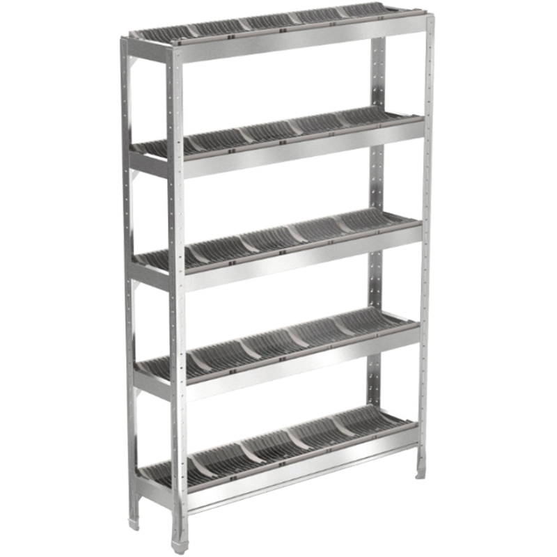 Стеллаж используются в моечном отделении для сушки и кратковременного хранения чистой посуды. Разборный, выполнен из стоек и 5-ти полок. Полка состоит из кассеты для тарелок и каркаса. Кассета представляет собой ячейки из пищевого пластика, в которые помещаются тарелки. Каркас из оцинкованной стали марки Aisi 430. На одной полке помещается 40 тарелок, весь стеллаж рассчитан на 200 тарелок. Внизу стеллажа расположен поддон, предназначенный для сбора жидкости, стекающей с мокрой посуды. Высота полок регулируется. Ножки стеллажа снабжены регуляторами высоты, что позволяет компенсировать неровности пола, а также имеются дополнительные конструктивные элементы, предназначенные для предотвращения его раскачивания во время работы и придающие устойчивость. Универсальная конструкция позволяет легко производить сборку стеллажей. Дополнительные элементы (разделители, ограничители), а также папки в комплект стеллажа не входят и заказываются отдельно. <!--noindex-->Изображения товаров на сайте не могут гарантировать точную цветопередачу.<!--/noindex-->
