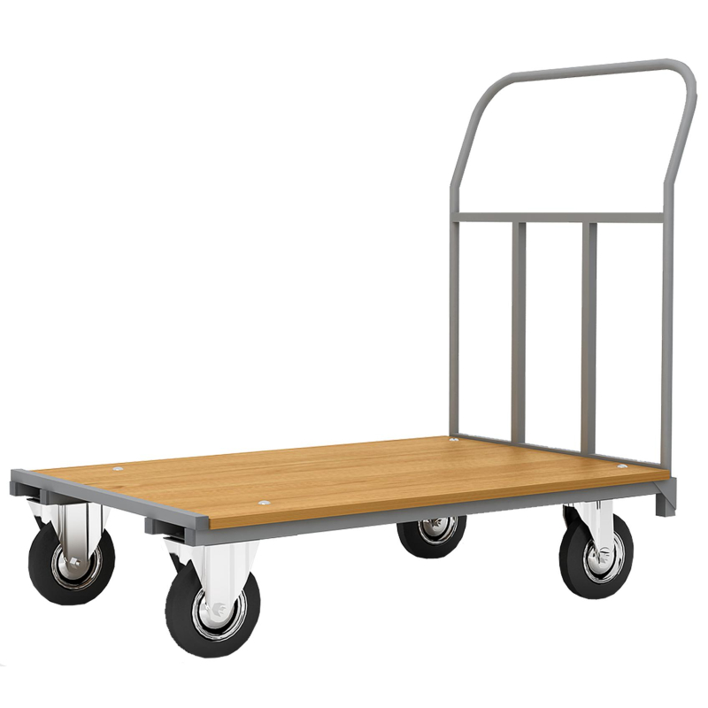 Тележка грузовая Т-001 имеет размеры 1020x660x980 мм. Каркас ее выполнен из стали серого цвета. Полка изготовлена из ламинированного ДСП. Тележка грузовая оснащена двумя поворотными и двумя неповоротными колесами с резиновым покрытием. Имеет полимерное покрытие для защиты от повреждений. Рукоятка тележки несъемная Грузоподъемность до 300 кг.Изображения товаров на сайте не могут гарантировать точную цветопередачу.