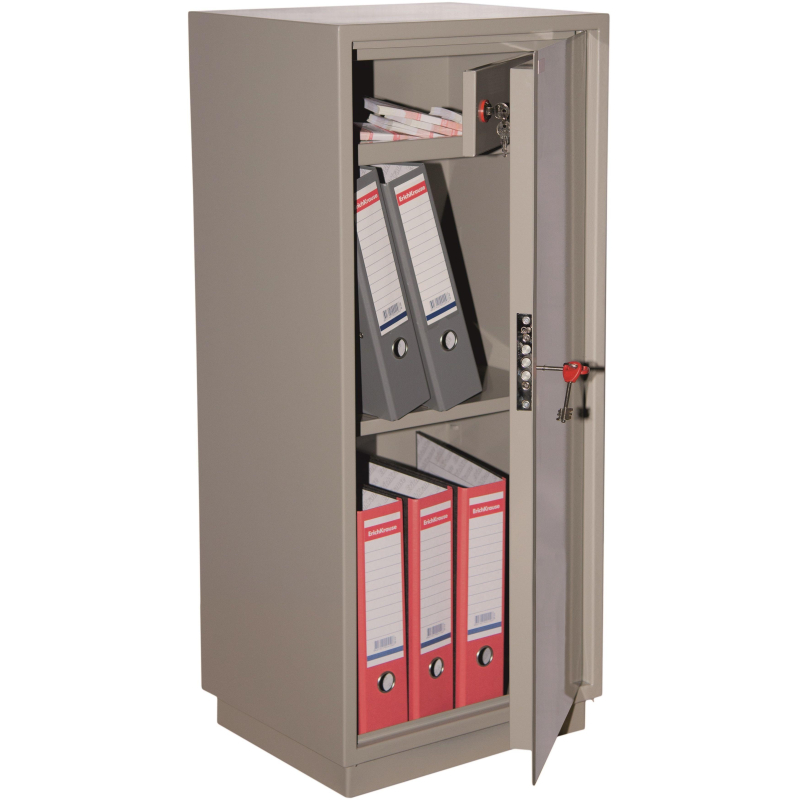 Шкаф для бумаг представляет собой цельносварную металлическую конструкцию прямоугольной формы, соединение элементов которой выполнены методом сварки сплошным швом по контуру прилегания элементов. Корпус и дверь шкафа изготовлены из стального листа толщиной 1,5 мм. Дверь изнутри усилена панелью коробчатого сечения из стального листа толщиной 0,8 мм. В двери шкафа КБС-041т - установлен врезной сувальдный замок. В верхней части шкафа КБС-041т - располагается отсек ограниченного доступа (трейзер), запираемый на замок почтового типа и 1 съемная регулируемая по высоте полка. Шкаф имеет подиум (подставку) высотой 47 мм для возможности размещения его вплотную к стене. Петли шкафа - внутренние. Окраска - полимерное порошковое покрытие, цвет серый. Вес 28 кг (+5%). Восьмисувальдный замок. Наличие съемных полок. Окраска - порошковое покрытие.<!--noindex-->Изображения товаров на сайте не могут гарантировать точную цветопередачу.<!--/noindex-->Законодательные и технические документы.