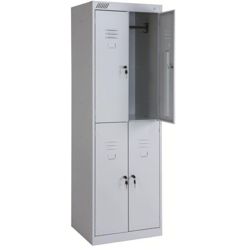 Внимание! Пожалуйста, проверяйте цвет изделия до начала сборки! Цвет на изображении товара в интернет-магазине или в печатном каталоге может отличаться от оригинала из-за особенностей цветопередачи. Шкаф для одежды используется для хранения сменной одежды в офисных, производственных, спортивных помещениях, а также для организации камер хранения в магазинах и супермаркетах. Шкаф для одежды состоит из двух секций, четырех ячеек. Комплектуется восемью крючками для одежды, четырьмя перекладинами, четырьмя замками повышенной секретности. Окрашен порошковой (полимерной) краской. Шкаф сборный, собирается при помощи металлических клепок и заклепочника, поставляется в разобранном виде, упакованный в гофрокартон.
