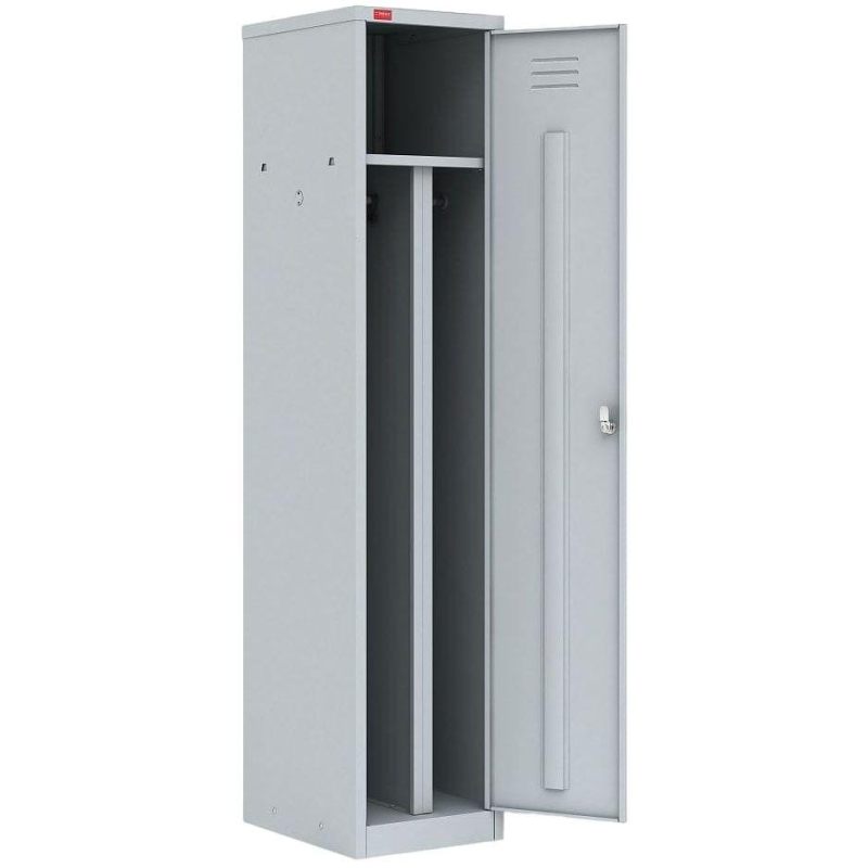 Шкаф для одежды, предназначен для хранения одежды в производственных, спортивных, образовательных и других помещениях. Обеспечивает пожаробезопасность. Состоит из одного отделения, разденного перегородкой на 2 секции. Каждая секция комплектуется перекладиной. Шкаф имеет 1 полку для головных уборов. Наличие вентиляционных отверстий. Комплектуется ключевым замком. Тип материала - металл 0,7 мм. Количество замков - 1 (2 ключа). Тип покрытия - порошковое, цвет - серый. Поставляется в разобранном виде. Нагрузка на полку до 30 кг. Законодательные и технические документы. <!--noindex-->Изображения товаров на сайте не могут гарантировать точную цветопередачу.<!--/noindex-->