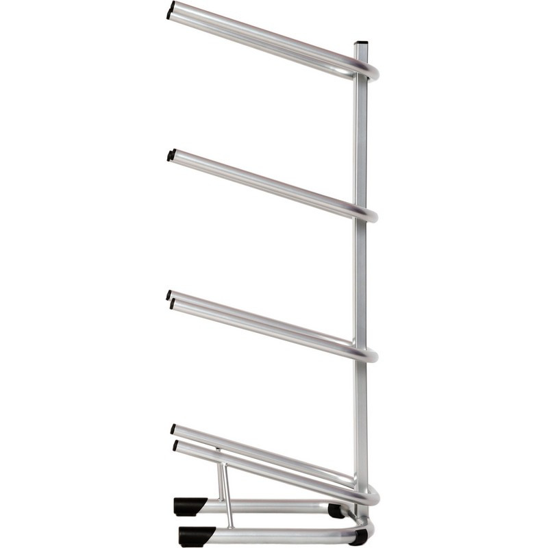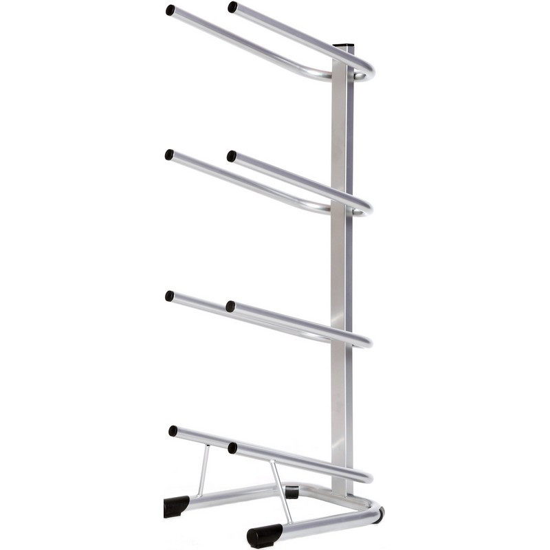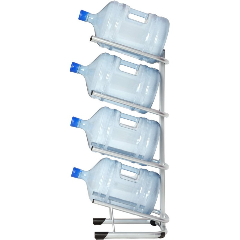 Стеллаж для бутилированной воды Бридж-4. Предназначен для организации хранения бутилированной воды в офисе, дома, на складе на минимальной площади. Полки стеллажа имеют оптимальный угол наклона, для удобства размещения и извлечения бутылей. Стеллаж оборудован подпятниками, что позволяет избежать повреждения напольного покрытия при его перемещении. Основание стеллажа не замкнуто, что удобно для уборки пола. Стеллаж имеет порошковое покрытие серого цвета, устойчивое к истиранию. Толщина труб из стали равна 1,5 мм. Нагрузка на полку до 25 кг. <br>Изображения товаров на сайте не могут гарантировать точную цветопередачу.
