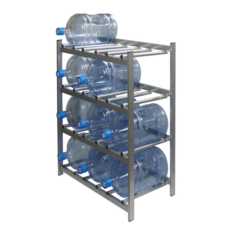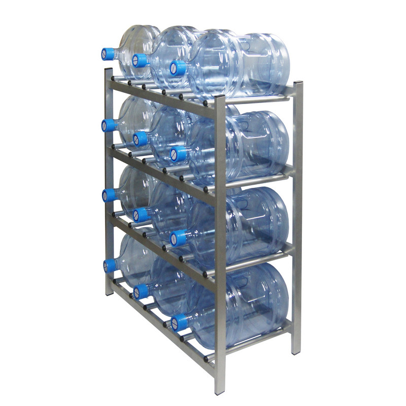 Стеллаж для бутилированной воды Бомис-12. Предназначен для организации хранения бутилированной воды в офисе, дома, на складе на минимальной площади. Полки стеллажа имеют оптимальный угол наклона, для удобства размещения и извлечения бутылей. Стеллаж оборудован подпятниками, что позволяет избежать повреждения напольного покрытия при его перемещении. Основание стеллажа не замкнуто, что удобно для уборки пола. Стеллаж имеет порошковое покрытие цвета металлик, устойчивое к истиранию. Толщина труб из стали равна 1,5 мм. Нагрузка на полку до 90 кг. Нагрузка на стеллаж до 264 кг. <br>Изображения товаров на сайте не могут гарантировать точную цветопередачу.