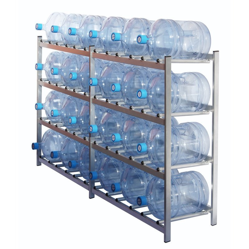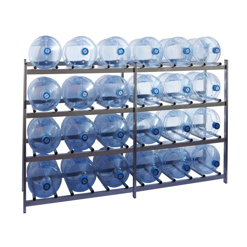 Стеллаж для бутилированной воды Бомис-24. Предназначен для организации хранения бутилированной воды в офисе, дома, на складе на минимальной площади. Полки стеллажа имеют оптимальный угол наклона, для удобства размещения и извлечения бутылей. Стеллаж оборудован подпятниками, что позволяет избежать повреждения напольного покрытия при его перемещении. Основание стеллажа не замкнуто, что удобно для уборки пола. Стеллаж имеет порошковое покрытие цвета металлик, устойчивое к истиранию. Толщина труб из стали равна 1,5 мм. Нагрузка на полку до 180 кг. Нагрузка на стеллаж до 528 кг. <br>Изображения товаров на сайте не могут гарантировать точную цветопередачу.