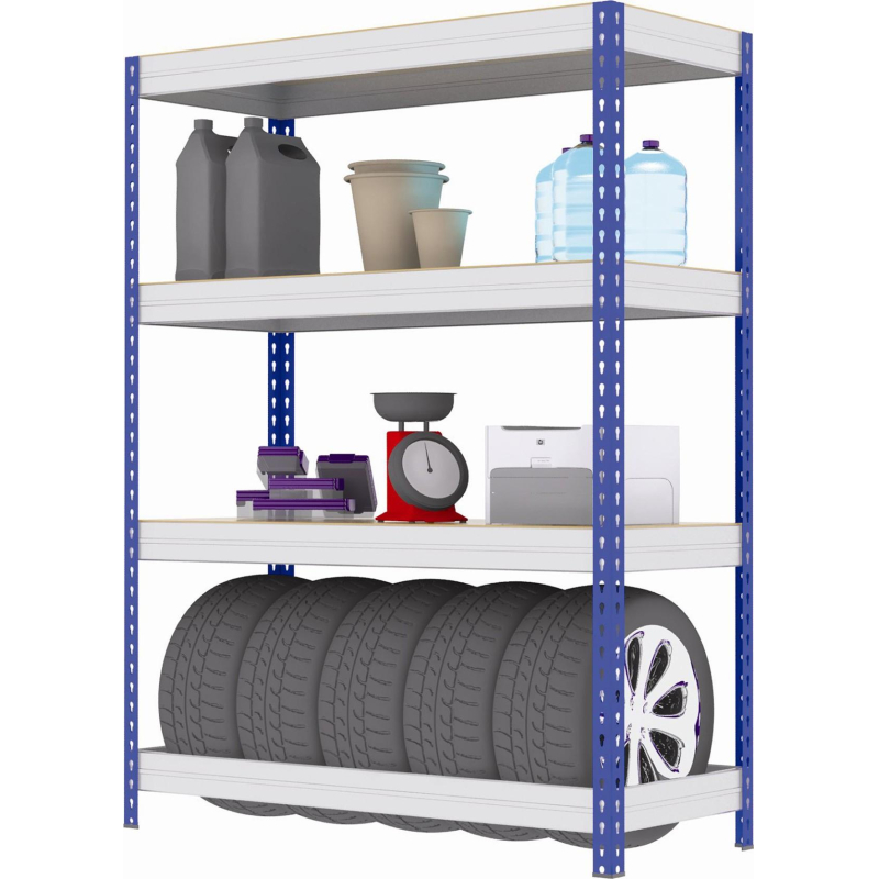 Стеллаж металлический МКФ18614-2.5 (4 полки). Стеллаж сборно-разборный, средней грузоподъемности. Предназначен для хранения объемных товаров в закрытых помещениях (торговых залах, бытовках, складах). Возможно использовать и для хранения автомобильных колес от 15 радиуса и выше. Конструкция стационарная, из четырех стоек, продольных и поперечных балок, на которых размещается настил из фанеры. Сборка стеллажей производится быстро и легко - без дополнительных крепежных элементов. Комплектуется пластиковыми подпятниками, предохраняющими пол от повреждений. Материала стоек - высокопрочная сталь. Материала полок - фанера 10 мм. Количество полок - 4. Шаг перфорации для крепления полок - 50 мм. Распределенная нагрузка на полку - 300 кг. Максимальная нагрузка на стеллаж - 1500 кг. Тип покрытия стоек - порошковое, цвет стоек - синий, цвет полок - натуральное дерево. Внимание! Максимальное расстояние от пола до первой полки - не более 150 мм. Дополнительные элементы (разделители, ограничители), а также папки в комплект стеллажа не входят и заказываются отдельно. <!--noindex-->Изображения товаров на сайте не могут гарантировать точную цветопередачу.<!--/noindex-->