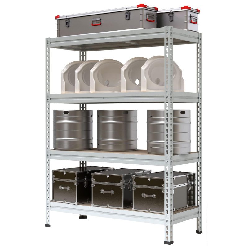 Стеллаж МС-Т 18764-2.0 - это стеллаж с 4 полками. Усиленные металлические складские стеллажи серии Титан МС-Т предназначены для хранения различных грузов. Стеллажи состоят из стоек, продольных и боковых балок. Настилом для стеллажа служат листы фанеры. Балки металлического стеллажа крепятся к стойкам при помощи двух замков с зацепом и надежно фиксируют стойки в вертикальном положении. Конструкция складского стеллажа позволяет изменять положение полок без демонтажа всего стеллажа. Стандартная комплектация стеллажа серии МС-Т 4 полки (стойка - 4 штуки, балка - 16 штук, фанера - 4 штуки). Покрытие порошковое полимерное RAL 7035, цвет светло-серый. Шаг перестановки полок по высоте через 50 мм. Настил из обработанной фанеры толщиной 10 мм. Легкий монтаж и демонтаж, отсутствие болтовых соединений, соединение на зацепах типа замок. Допустимая равномерно распределенная нагрузка на полку до 300 кг. Допустимая нагрузка на секцию до 2100 кг. Поставляется в разобранном виде и без внутреннего наполнения, изображенного на рисунке. Вес стеллажа - 47,1 кг. При использовании стеллажа с нагрузками превышающими 1500 кг на секцию обязательна установка поперечных стяжек на каждую полку. Приобретаются отдельно. Законодательные и технические документы. Дополнительные элементы (разделители, ограничители), а также папки в комплект стеллажа не входят и заказываются отдельно.<!--noindex-->Изображения товаров на сайте не могут гарантировать точную цветопередачу.<!--/noindex-->