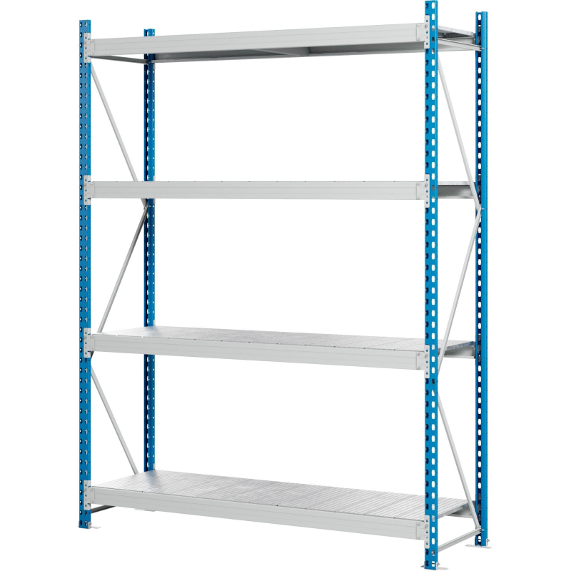 Стеллаж сборно-разборный, средней грузоподъемности серии SGR-V. Подходит для оборудования складских и подсобных помещений, промышленных предприятий, автомобильных мастерских, торговых залов. Усовершенствованная стеллажная конструкция, состоит из рам, продольных балок с креплениями на зацепах и металлических настилов, размещаемых на продольных балках. Полка представляет собой ярус хранения и состоит из двух балок и настилов из оцинкованной стали. Сборка стеллажа не займет много времени, т.к. крепление балки к стойкам безболтовое, на зацепах. Конструкция позволяет менять положение полок без демонтажа всего стеллажа. Для безопасности стеллаж оснащен фиксаторами, исключающими случайный съем зацепов. Стеллаж снабжен металлическими подпятниками (крепятся на болтах). К основному стеллажу можно использовать дополнительные секции. При размещении основных и дополнительных стеллажей в линию нагрузочные характеристики сохраняются. Материала стоек - сталь, материала полок - сталь. Количество полок - 4. Шаг перфорации для крепления полок - 50 мм. Распределенная нагрузка на ярус - 500 кг, максимальная нагрузка на секцию стеллажа - 2400 кг (при максимальном количестве полок - 6 штук). Цвет стоек - синий (RAL 5015), цвет полок - серый (оцинкованная сталь). Допустимое минимальное количество ярусов хранения на каждую секцию - не менее трех. Внимание! - максимальное расстояние от пола до нижнего яруса - не более 300 мм, между ярусами - 800 мм. Обязательное крепление анкерными болтами к полу (в комплект не входят). Дополнительные элементы (разделители, ограничители), а также папки в комплект стеллажа не входят и заказываются отдельно. <!--noindex-->Изображения товаров на сайте не могут гарантировать точную цветопередачу.<!--/noindex-->