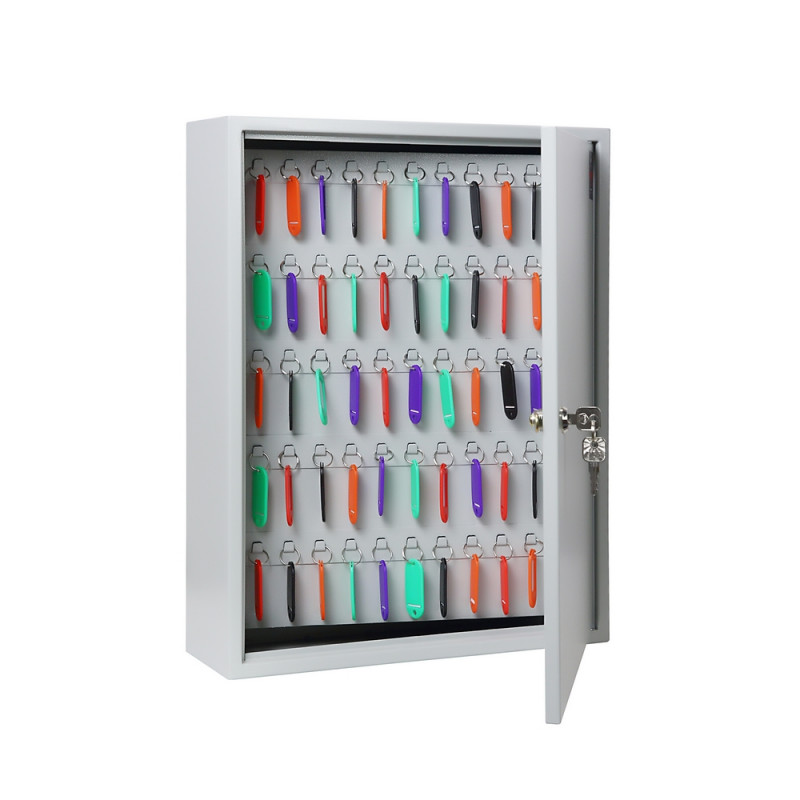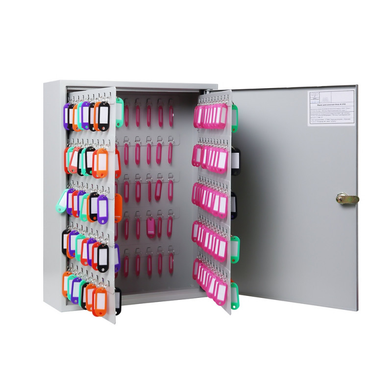 Шкаф KB-250 для удобного и надежного хранения ключей имеет размеры 48x38 см и глубину 12 см. Изготовлен из металла с покрытием серого цвета. Внутри 250 крючков для ключей (на корпусе и перекидных вставках). Дверца оснащена ключевым замком. В комплекте 250 пластиковых ключевых бирок с этикетками для маркировки. Шкаф для ключей может крепиться к стене (крепеж в комплекте). Фурнитура для крепления к стене в комплект не входит. <!--noindex-->Изображения товаров на сайте не могут гарантировать точную цветопередачу.<!--/noindex-->