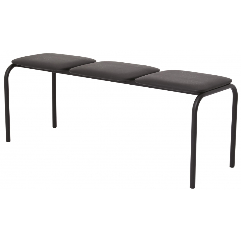 Банкетка с раздельными сидениями на металлическом каркасе, покрытом порошковой краской черного цвета. Обивка выполнена из искусственной кожи черного цвета, сидения расположены на некотором расстоянии друг от друга. Размеры: 1215x405x465 мм. Законодательные и технические документы. <!--noindex-->Изображения товаров на сайте не могут гарантировать точную цветопередачу.<!--/noindex-->