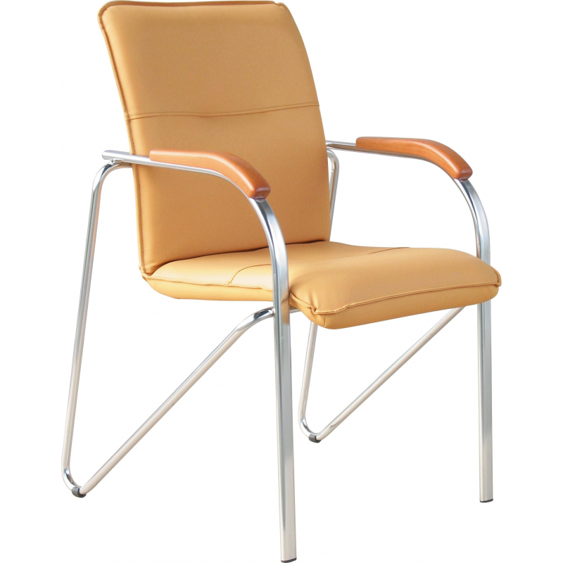 Внимание! Пожалуйста, проверяйте цвет изделия до начала сборки! Цвет на изображении товара в интернет-магазине или в печатном каталоге может отличаться от оригинала из-за особенностей цветопередачи. Конференц-кресло Samba. Обивка из искусственной кожи. Кресло на металлическом хромированном каркасе для посетителей. Подлокотники декорированы деревянными накладками.