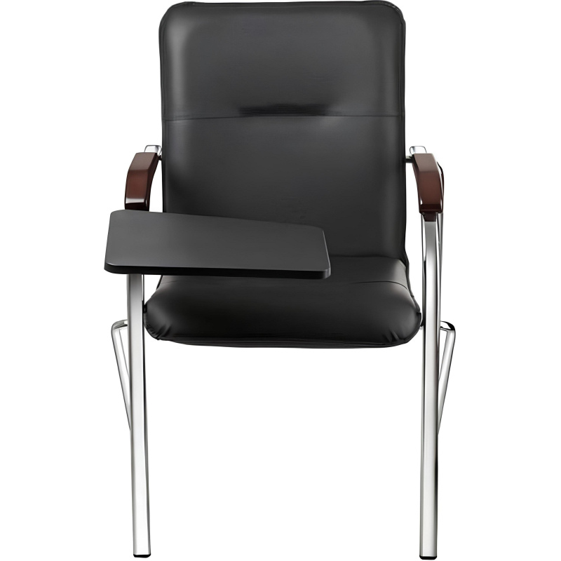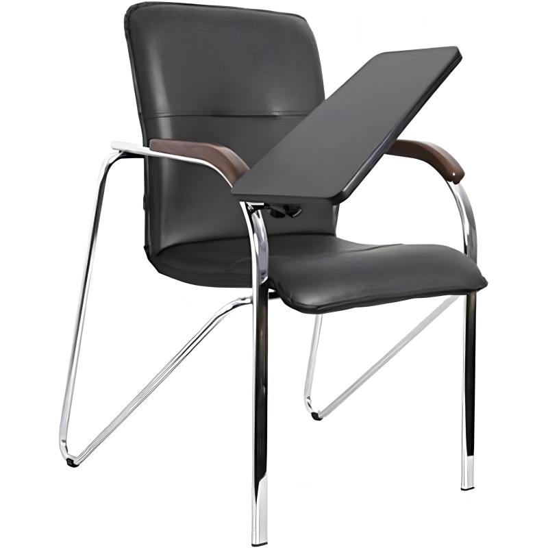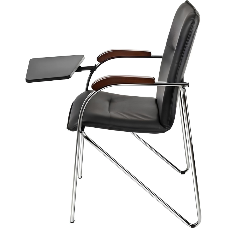 Внимание! Пожалуйста, проверяйте цвет изделия до начала сборки! Цвет на изображении товара в интернет-магазине или в печатном каталоге может отличаться от оригинала из-за особенностей цветопередачи. Конференц-кресло Samba ST (со столиком) подходит для конференц-залов, для приема посетителей в офисе, для дома. Обито искусственной кожей черного цвета. Каркас выполнен из хромированного металла, оснащен накладками для сохранности напольного покрытия. На подлокотниках - деревянные вставки цвета орех. Максимальная статическая нагрузка - 100 кг.