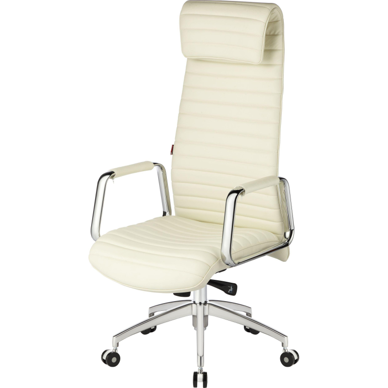 Внимание! Пожалуйста, проверяйте цвет изделия до начала сборки! Цвет на изображении товара в интернет-магазине или в печатном каталоге может отличаться от оригинала из-за особенностей цветопередачи. Кресло для руководителя Easy Chair 528 ML белого цвета, обивка с горизонтальными полосами. Лицевые части декорированы натуральной кожей. Боковины, задняя часть сиденья и спинки выполнены из высококачественной искусственной кожи с учетом фактуры кресла. Высокая спинка с эргономичным подголовником обеспечивает хорошую опору для шеи. Хромированные узкие подлокотники дополнены мягкими накладками. Крестовина, изготовленная из полированного алюминия, оснащена пятью поворотными колесами. Механизм качания Synchro позволяет спинке и сиденью отклоняться в соотношении 2:1, угол наклона изменяется синхронно.