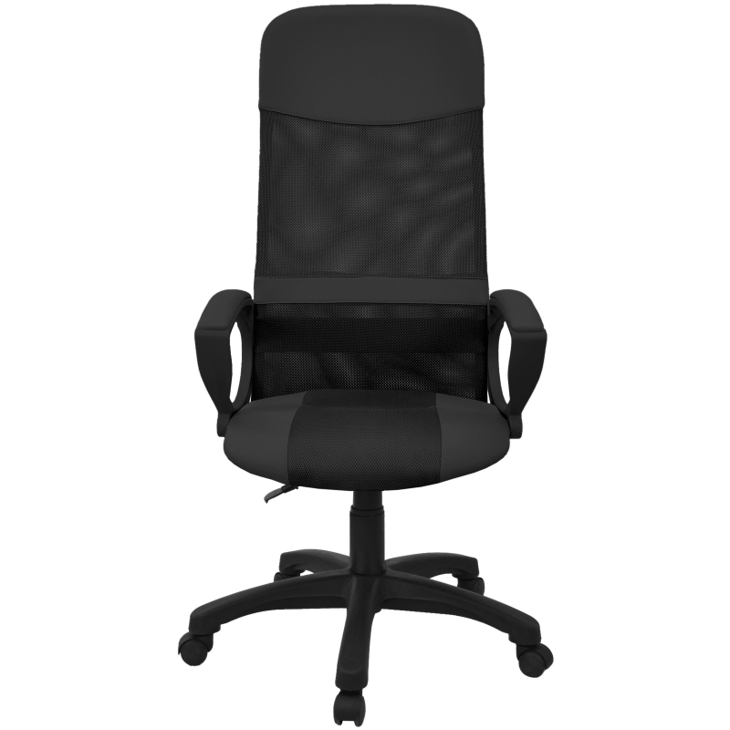 Внимание! Пожалуйста, проверяйте цвет изделия до начала сборки! Цвет на изображении товара в интернет-магазине или в печатном каталоге может отличаться от оригинала из-за особенностей цветопередачи. Кресло для руководителя Элегант L2 с обивкой из искусственной кожи, ткани и сетки черного цвета. Подлокотники и крестовина пластиковые. На подлокотниках имеются мягкие накладки черного цвета. Механизм качания отсутствует. Кресло оснащено регулировкой по высоте (газлифт).
