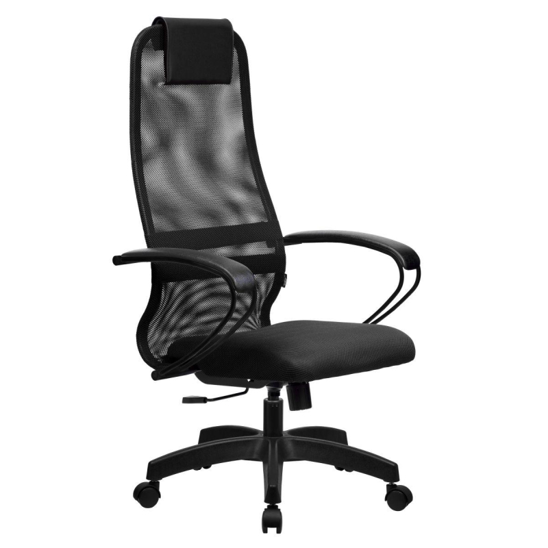 Внимание! Пожалуйста, проверяйте цвет изделия до начала сборки! Цвет на изображении товара в интернет-магазине или в печатном каталоге может отличаться от оригинала из-за особенностей цветопередачи. Кресло для руководителя Метта SU-B-8. Спинка кресла изготовлена из сетки, свободно пропускающей воздух, и оснащена накладкой-подголовником. Сиденье выполнено из обивочной сетчатой ткани без прошивки. Металлические подлокотники оснащены мягкими накладками из искусственной кожи. Крестовина пятилучевая, пластиковая. Механизм качания Top Gun - свободное качание с фиксацией в вертикальном положении. Угол между спинкой и сиденьем не меняется. Кресло имеет регулировку по высоте (газлифт). Максимальная статическая нагрузка на кресло - 120 кг.
