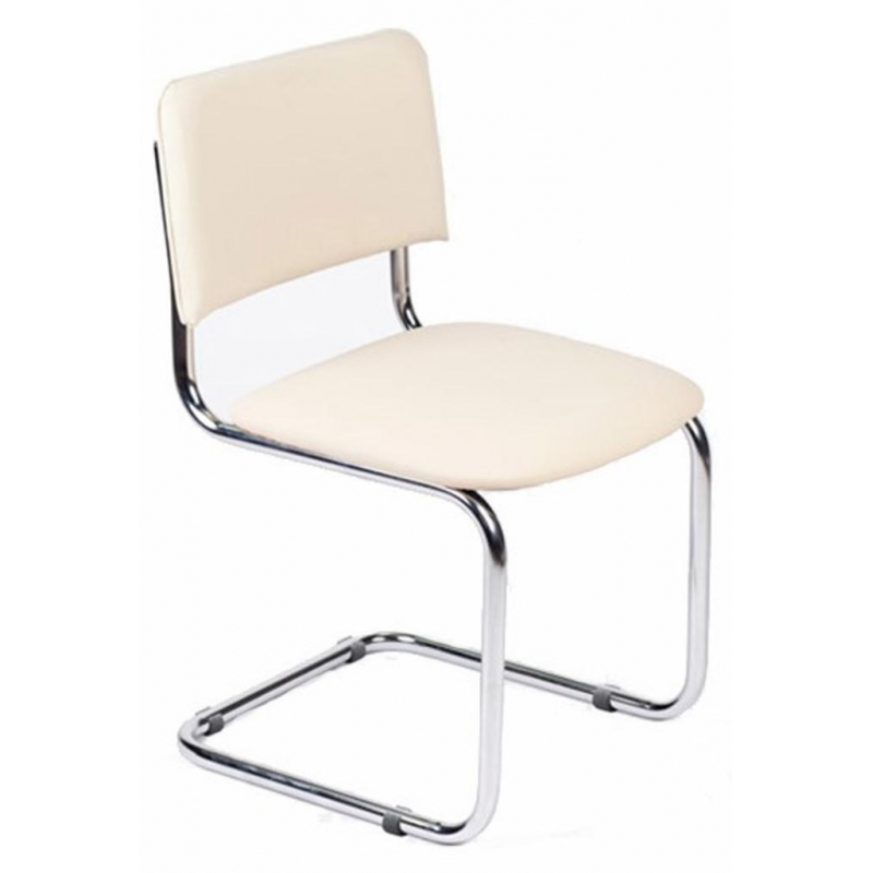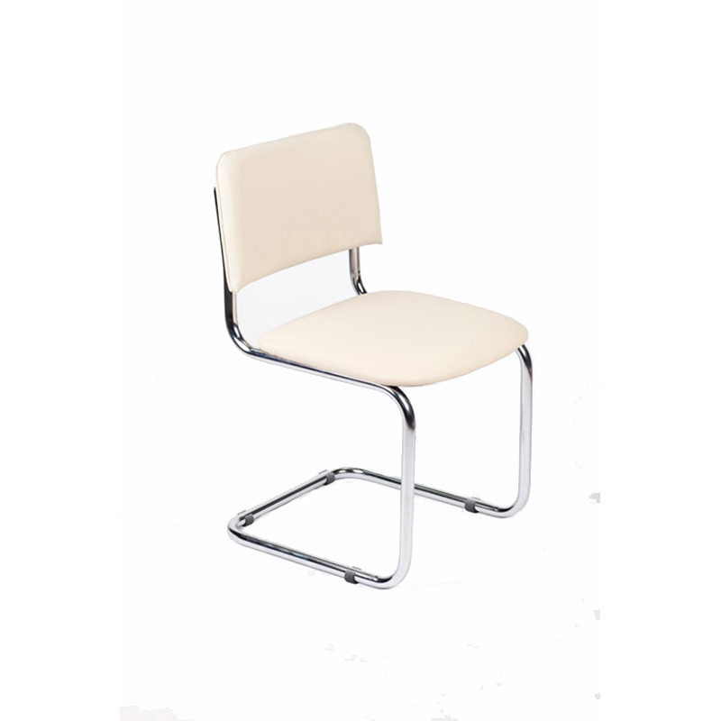 Внимание! Пожалуйста, проверяйте цвет изделия до начала сборки! Цвет на изображении товара в интернет-магазине или в печатном каталоге может отличаться от оригинала из-за особенностей цветопередачи. Стул офисный Silwia без подлокотников на металлическом хромированном каркасе. Обивка - искусственная кожа светло-бежевого цвета.