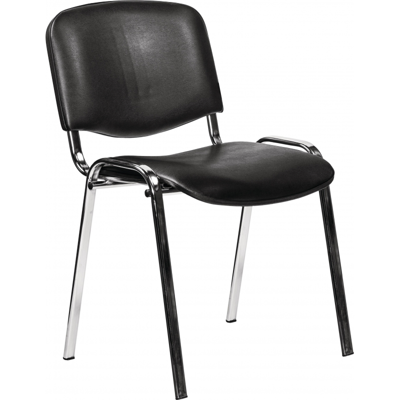 Внимание! Пожалуйста, проверяйте цвет изделия до начала сборки! Цвет на изображении товара в интернет-магазине или в печатном каталоге может отличаться от оригинала из-за особенностей цветопередачи. Стул офисный на хромированном каркасе, обивка из высококачественной искусственной кожи черного цвета.