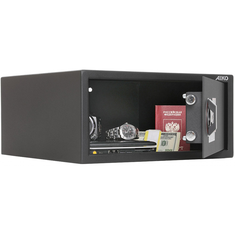 Сейф гостиничный Aiko SH-20 EL предназначен для хранения бумажных документов в гостиничных номерах, дома, в офисе. - толщина лицевой панели - 2,8 мм; - толщина боковых стенок - 1,2 мм; - комплектуются электронным замком PLS-2.2 + аварийный мастер-ключ, работает от 1 элемента питания 9V типа 6LR61; - замок оснащен звуковыми и световыми индикаторами; - предусмотрено анкерное крепление к полу и стене. Дополнительные элементы (папки, кэшбоксы) в комплект сейфа не входят и заказываются отдельно.