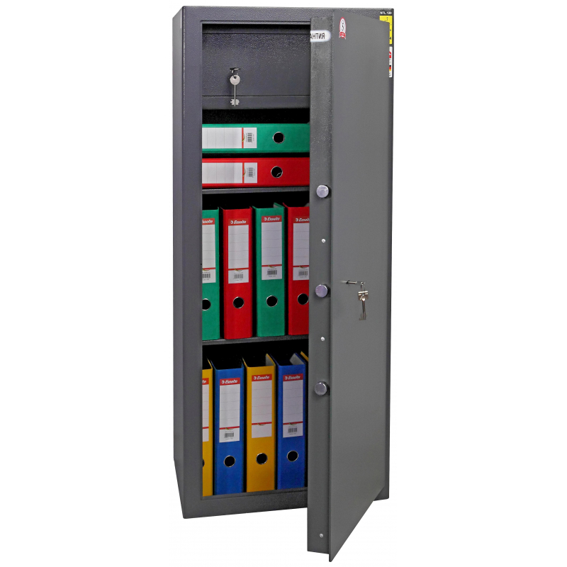 Сейф мебельный Onix Office NTL-120 Ms. Предназначен для защиты документов и ценностей от несанкционированного доступа (взлома) дома и в офисе. Комлектуется ключевым замком Mauer (Германия). Хранение папок формата: А4, Корона, Foolscap. - устойчивость к взлому - ГОСТ Р 55148-2012. Класс H0; - толщина лицевой панели - 5 мм; - толщина боковых стенок - 2 мм; - трехсторонняя ригельная система запирания (диаметр ригеля 22 мм); - замок - 1; - защита замка от высверливания; - количество полок - 2; - трейзер; - тип покрытия - порошковое; - цвет - серый; - возможность крепления к полу и к стене. Дополнительные элементы (папки, кэшбоксы) в комплект сейфа не входят и заказываются отдельно. Изображения товаров на сайте не могут гарантировать точную цветопередачу.