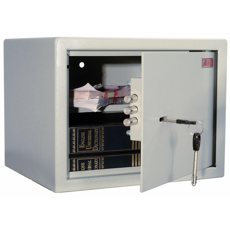 Сейф мебельный Aiko Т-23. Предназначены для хранения незначительных ценностей, документов и т.д. в домашних условиях. Комплектуется ключевым замком. - устойчивость к взлому - ГОСТ Р 50862-2005, класс НО; - толщина лицевой панели - 3 мм; - толщина металла корпуса - 1,5 мм; - замок - 1 ключевой; - тип покрытия - порошковое, цвет - оттенок серого с эффектом молотковой эмали; - возможность анкерного крепления к полу и к стене. Дополнительные элементы (папки, кэшбоксы) в комплект сейфа не входят и заказываются отдельно. <!--noindex-->Изображения товаров на сайте не могут гарантировать точную цветопередачу.<!--/noindex-->