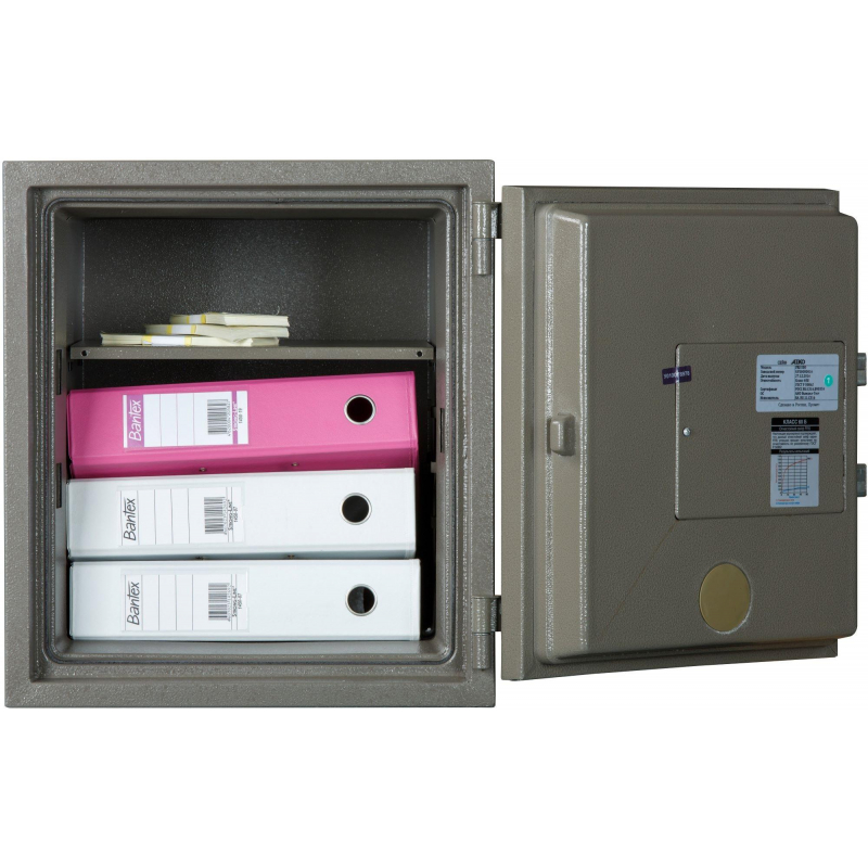 Огнестойкий сейф Aiko FRS-500. - предназначен для сохранности документов и ценностей при пожаре; - огнестойкость: ГОСТ Р 50862-2012: класс 60Б (ГОСТ Р); класс 60Б (РСБ-С); - при заливке двери и корпуса сейфа используется запатентованный состав огнестойкого бетона; - тепловой замок, усиленный огнестойким уплотнителем; - ключевой замок; - цвет: оттенок коричневого с эффектом молотковой эмали; - тип покрытия: порошковое; - предусмотрено анкерное крепление к полу (испытание на огнестойкость проведено с анкерным отверстием). Габаритные размеры сейфа (ШхГхВ): 430х430х480 мм. Гарантия 5 лет (гарантия на электронный замок - 1 год). Дополнительные элементы (папки, кэшбоксы) в комплект сейфа не входят и заказываются отдельно. Изображения товаров на сайте не могут гарантировать точную цветопередачу.