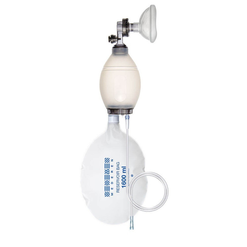 Искусственная вентиляция легких - это комплекс мер по обеспечению газообмена в легких пациента с целью поддержания или нормализации метаболических процессов организма. Методики проведения ИВЛ делятся на безаппаратные и аппаратные. Наиболее доступный и простой в использовании аппарат - мешок Амбу, состоящий из самораздувающегося баллона и лицевой маски. При сжатии баллона (мешка) происходит поступление его содержимого в легкие пациента, затем мешок самостоятельно расправляется за счет всасывания воздуха через специальный клапан. В качестве дыхательной смеси может использоваться как окружающий воздух, так и подключенный источник кислорода. Аппараты искусственной вентиляции легких ручные Mederen имеют прозрачную одноразовую маску из ПВХ с мягкой раздувной манжетой и съемным кольцом для фиксации на голове пациента с цветовой маркировкой или многоразовую силиконовую маску без манжеты, вертлужный коннектор с осью вращения на 360 градусов, структурированную поверхностью дыхательного мешка, благодаря которой он не выскальзывает из рук врача. Изделие из силикона предназначено для многоразового применения (за исключением кислородной трубки и мешка резервуарного), не стерильно, при повторном применении мешок дыхательный и дыхательная маска подлежат стерилизации. Характеристики: - размер лицевой маски: № 2 (детский); - объем дыхательного мешка для новорожденных - 280 мл; для детей - 650 мл; - материал изготовления дыхательных мешков: силикон; - клапан ограничения давления до 40 см Н2О в аппаратах для детей и новорожденных снижает риск нанесения баротравмы легких; - вертлужный коннектор с осью вращения на 360 градусов; - текстурированная поверхность дыхательного мешка препятствует скольжению в руках медицинского персонала; - отсоединяемый резервуарный мешок из полиэтилена для детей и новорожденных- 1600 мл; - кислородная магистраль длиною 2 м устойчива к перегибам и имеет стандартный разъем на дистальном конце; - аппарат и комплектующие упакованы в пластиковый бокс с прозрачной крышкой и ручкой для переноски.