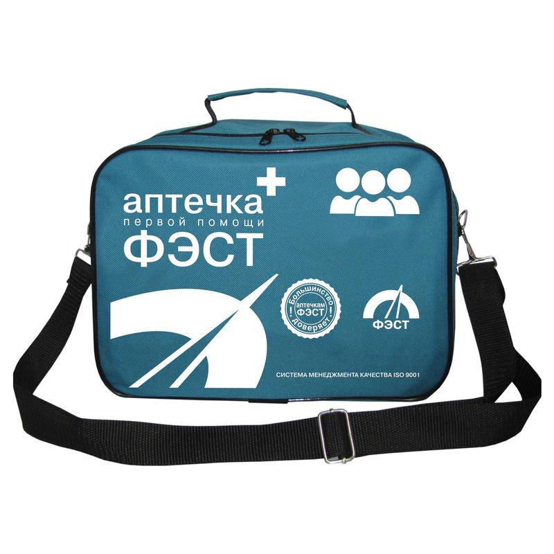 Аптечка первой помощи коллективная ФЭСТ для оснащения защитных сооружений гражданской обороны (ЗС ГО) на 100-150 человек.Аптечка изготовлена в соответствии с приказом МЧС РФ от 15.12.2002 г. № 583.ТУ 9398-087-10973749-2009Состав:1. Аммиака раствор 10%, 10 мл или 40 мл, 1 флакон.2. Бекарбон, таблетки № 6, 1 упаковка.3. Бриллиантового зеленого раствор 1%, 10 мл 2 флакона.4. Раствор йода спиртовой 5% 10 мл или ампулы по 1 мл № 10, 2 флакона/2 упаковки.5. Бромкамфора, таблетки 0,25 г № 30 или корвалол 15 мл 1 упаковка/ 1 флакон.6. Калия перманганат 3 г, 1 упаковка.7. Таблетки от кашля № 10, 5 упаковок.8. Борная кислота 3%, спиртовой раствор 25 мл или 10 мл 2/5 флаконов.9. Фталазол, таблетки 0,5 г № 10, 2 упаковки.10. Сульфацила натрия раствор 20%, 1 мл № 2 тюбик-капельница или 5 мл флакон-капельница 10 упаковок/4 флакона.11. Вата медицинская гигроскопическая стерильная 50 г, 3 упаковки.12. Бинт стерильный 5 м на 10 см, 5 штук.13. Лейкопластырь 5x500 см, 1 штука.14. Салфетки марлевые медицинские стерильные 16x14 см № 20, 1 упаковка.15. Анальгин, таблетки 500 мг № 10, 4 упаковки.16. Валидол, таблетки 60 мг № 6 или № 10, 5 упаковок.17. Ацетилсалициловая кислота, таблетки 500 мг № 10, 1 упаковка.18. Нитроглицерин, капсулы 0,5 мг № 20 или таблетки 0,5 мг № 40, 2 упаковки/1 упаковка.19. Жгут кровоостанавливающий, 1 штука.20. Термометр медицинский, 5 шт.21. Настойка валерианы, 25 мл, 1 флакон.22. Стаканчик мерный, 1 штука.23. Цитрамон, табл. № 10, 3 упаковки.24. Ножницы медицинские, 1 штука.25. Ванночка глазная, 1 штука.26. Футляр для аптечки, 1 штука.