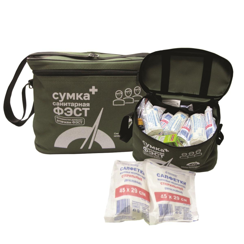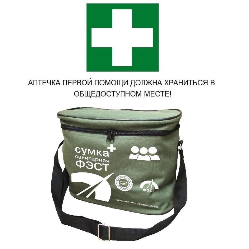 Аптечка для оказания первой помощи в полевых условиях, соответствует требованиям служб ГО и ЧС. Для оснащения подразделений ГО ЧС. ТУ 9398-088-10973749-2009. Состав: 1. Аммиака раствор 10%, 10 мл или 40 мл - 1 флакон. 2. Раствор йода спиртовой 5%, 10 мл или ампулы по 1 мл №10 - 1 флакон/1 упаковка. 3. Бинт стерильный 7 м х 14 см - 5 штук. 4. Бинт стерильный 5 м х 10 см - 10 штук. 5. Вата медицинская нестерильная, 250 г или 50 г - 1 упаковка/5 упаковок. 6. Вата медицинская стерильная, 50 г - 2 упаковки. 7. Косынка перевязочная - 4 штуки. 8. Лейкопластырь 3x500 см - 1 штука. 9. Пакет перевязочный медицинский стерильный с 2-мя подушечками - 3 штуки. 10. Салфетки марлевые медицинские стерильные 16x14 см №20 - 1 упаковка. 11. Салфетки марлевые медицинские стерильные 45x29 см №10 - 1 упаковка. 12. Салфетка спиртовая антисептическая - 1 штука. 13. Булавка безопасная - 10 штук. 14. Блокнот - 1 штука. 15. Жгут кровоостанавливающий - 1 штука. 16. Карандаш простой - 1 штука. 17. Ножницы универсальные - 1 штука. 18. Нож складной - 1 штука. 19. Шприц одноразовый, 2 мл - 3 штуки. 20. Устройство для проведения искусственного дыхания "Рот-Устройство-Рот" - 1 штука. 21. Перчатки медицинские нестерильные - 1 пара. Общие правила и рекомендации эксплуатации аптечек первой помощи: 1. Выделите общедоступное место для хранения аптечки, отметьте информационным знаком "Аптечка". 2. Регулярно напоминайте сотрудникам о наличии аптечки (1 раз в месяц или в 1 раз в квартал - в зависимости от специфики производства). 3. У секретаря, руководителя или в самой аптечке должна быть информация о сотрудниках с медицинским образованием и их контактные номера. 4. Регулярно проводите инвентаризацию аптечки на предмет наличия всех медикаментов и их сроков годности. 5. Проверьте, чтобы компоненты в аптечке соответствовали типовым травмам рода деятельности предприятия. 6. Дополните аптечку медикаментами специфичных заболеваний (диабет, астма, аллергия и др.). 7. Наличие тонометра и термометра позволит быстрее определить, какое средство необходимо дать сотруднику в ряде случаев. 8. Важно иметь контакты родственников или друзей, с кем можно связаться в случае критической ситуации. 9. Составьте подробную инструкцию с перечнем симптомов и медикаментов. Разместите информационные плакаты. Это позволит не терять ценное время при оказании первой помощи.