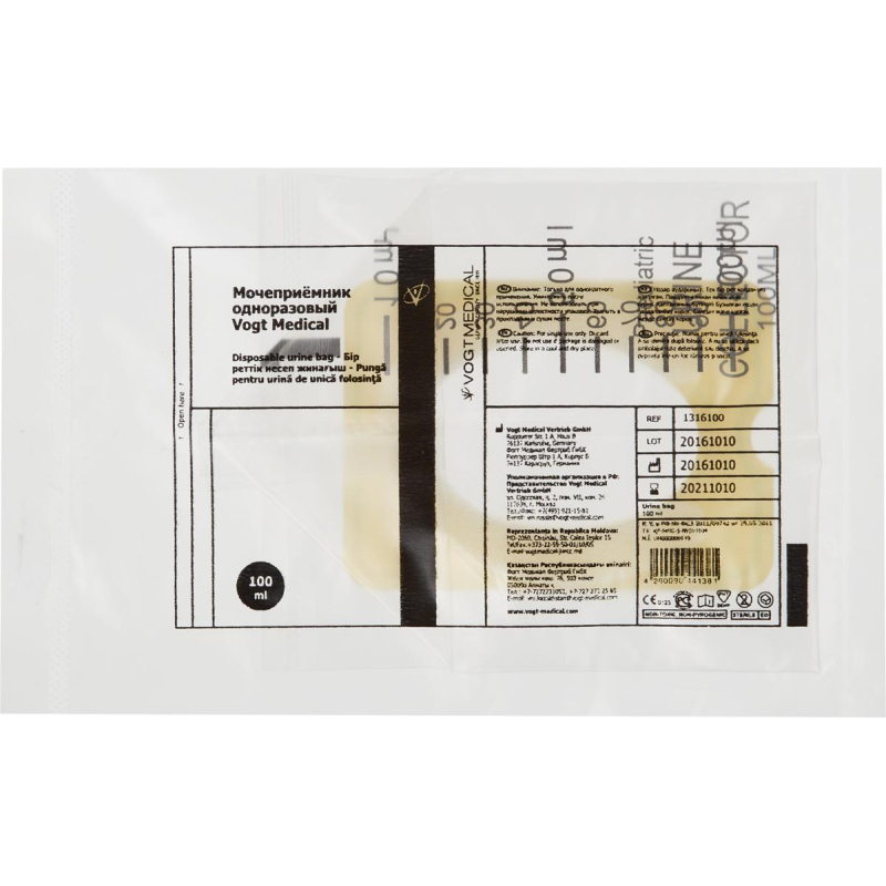 Детские мочеприемники - малые мочеприемники, предназначены для сбора мочи у младенцев и маленьких детей для последующего анализа. Детский мочеприемник представляет собой прозрачный мешочек прямоугольной формы емкостью 100 мл с овальным отверстием и встроенной клеевой основой, которая обеспечивает надежное прилегание. Мочеприемники Vogt Medical универсальные, подходят для мальчиков и девочек. Мочеприемник имеет специальный гипоаллергенный липкий фиксирующий слой. Легко приклеивается и снимается. Фиксирующий слой исключает возможность вытекания мочи. Объем собранной жидкости легко считывается со шкалы, расположенной на передней полупрозрачной стороне мочеприемника. Цена деления 10 мл. Материал изготовления: прозрачный полиэтилен. Стерилизация оксидом этилена. Срок годности: 5 лет. Количество в упаковке - 100 штук.
